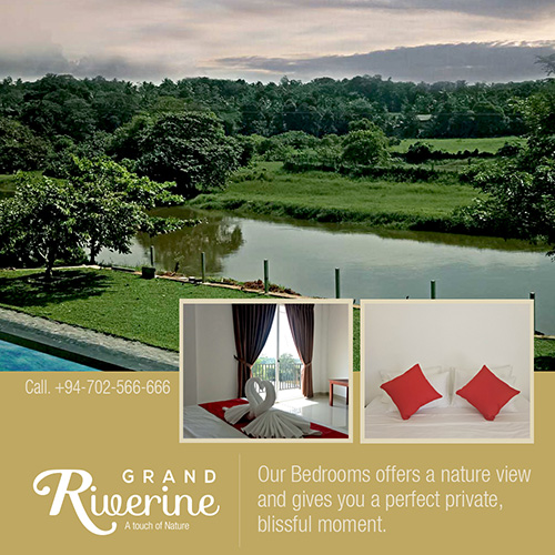 Located in popular Kotugoda, Ja-Ela Area, Grand Riverine will please you with its splendid paddy field view. Treat yourself to a scrumptious breakfast just after a swim in our pool overlooking it’s beautiful nature. Our Bedrooms offers a nature view and gives you a perfect private, blissful moment. The hotel is big enough to accommodate a large group of people for Weddings, Office Get-Together and other functions. Find our free WiFi, lounge & bar, restaurant food and a beautiful pool.